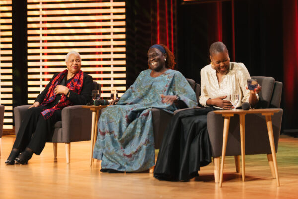 Dr. Notisha Massaquoi (Moderator) with Mrs. Graça Machel and Theo Sowa on the second panel, Unwavering Solidarity: Transforming Power, Philanthropy and Global Health.
